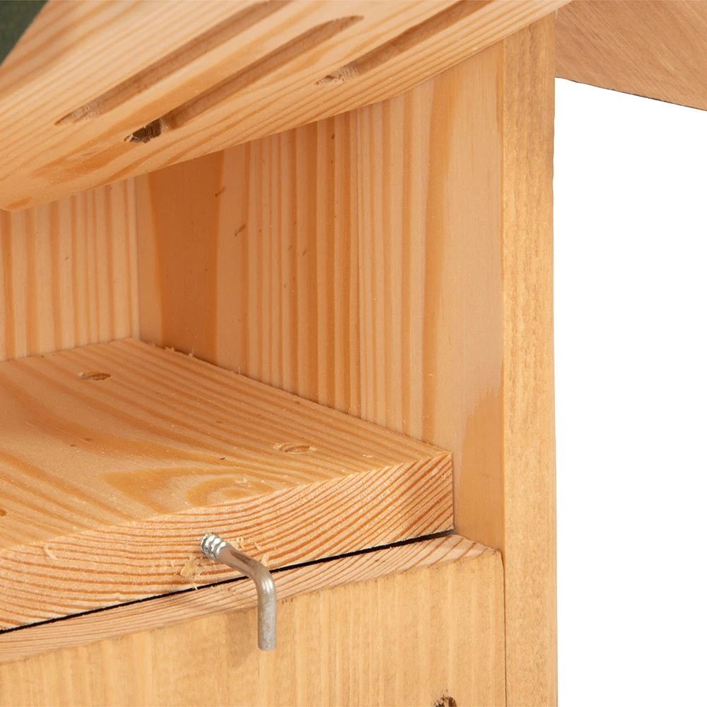 Der obere Teil dieser Kombination ist ein Schmetterlingskasten. Der untere Teil ist ein Bienenhotel, in dem sich Schlupfwespen und Solitärbienen besonders wohlfühlen werden. Letztere helfen Ihnen gern bei der Bestäubung Ihrer Gartenpflanzen. Ein Bienenhotel ist in einem tierfreundlichen Garten unverzichtbar und erhöht zudem die Biodiversität.