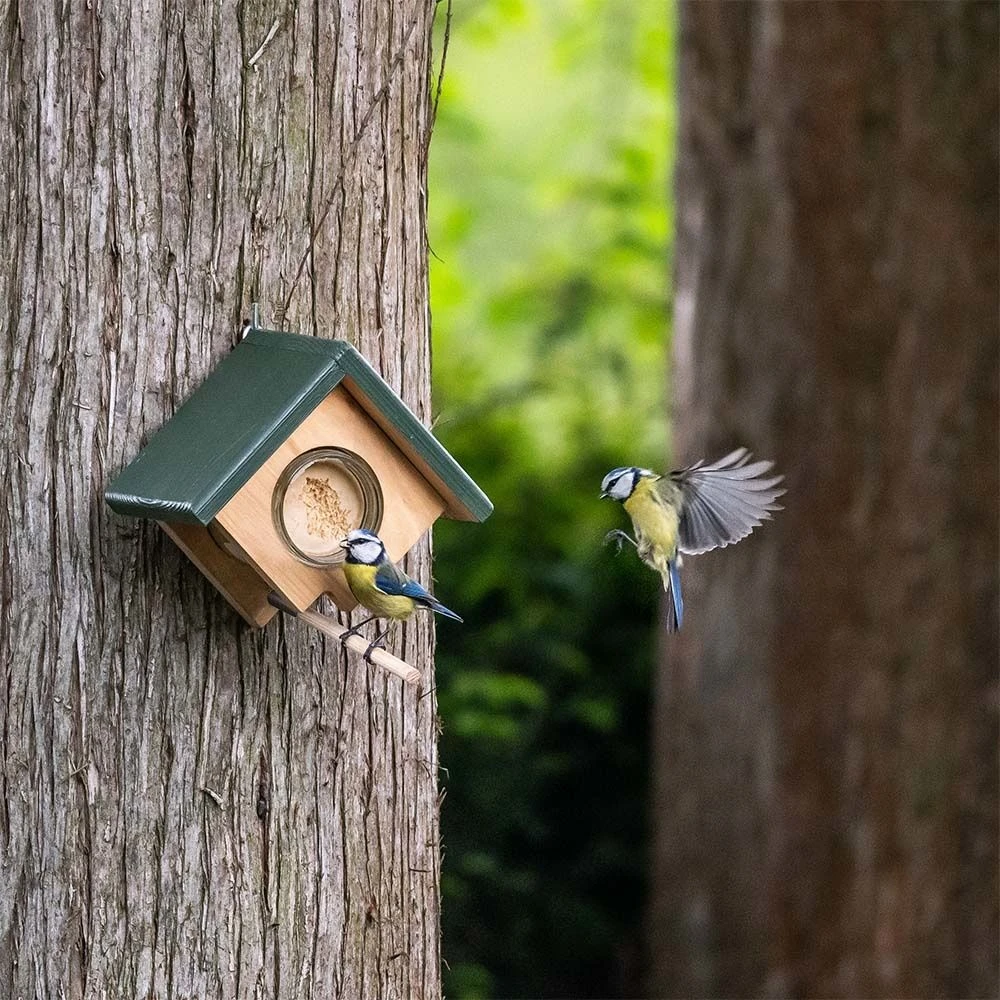 Sie können jedes unserer Erdnussbuttergläser, deren Inhalt mit Sachverstand entwickelt wurde, in diesem Futterhäuschen verwenden. Unsere Erdnussbuttergläser wurden speziell für Gartenvögel entwickelt und können das ganze Jahr über angeboten werden. Es macht Freude, kleine Vögel zu beobachten, die das Cork-Futterhaus benutzen, und das einzigartige Gewichtssystem in Aktion zu sehen.