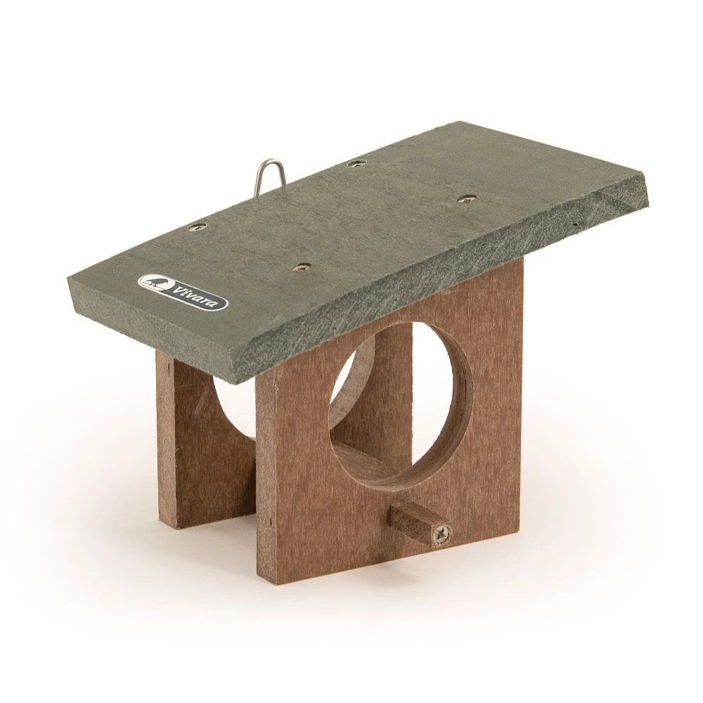 Durch die hochwertige Verarbeitung des Materials hat der Erdnussbutterglas-Halter eine natürliche Ausstrahlung, welche an Holz erinnert und passt somit auch in Gärten, die einen natürlicheren Look haben. Das recycelte Material hat weitere Vorteile: es rottet oder rostet nicht, ist wasserabweisend, und schützt mit seiner Stabilität vor schlechtem Wetter sowie Eindringlingen (z.B. Spechte, Krähen). Ebenso wurde darauf geachtet, dass es UV-beständig ist und somit nicht ausbleicht. Aufgrund dieser Eigenschaften gewährt Vivara auf dieses Produkt fünf Jahre Garantie.