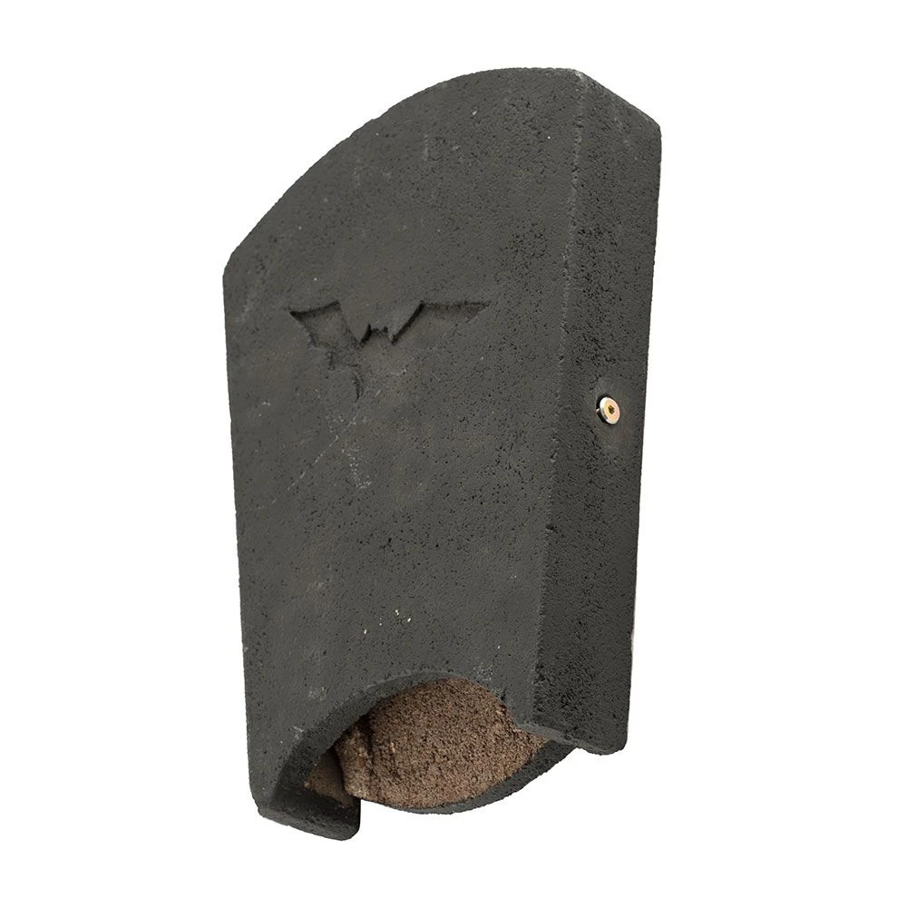 Hergestellt wurde dieser Fledermauskasten aus nachhaltigem Holzbeton. Dabei handelt es sich um ein natürliches Material, bei dessen Produktion keinerlei chemische Zusätze (oder Dämpfe) zum Einsatz kommen. Weitere Vorteile von Holzbeton sind die stabilere Innentemperatur und die raue Oberfläche, die den Fledermäusen mehr Halt bietet. Der Fledermauskasten ist mit schwarzer Wandfarbe gestrichen.