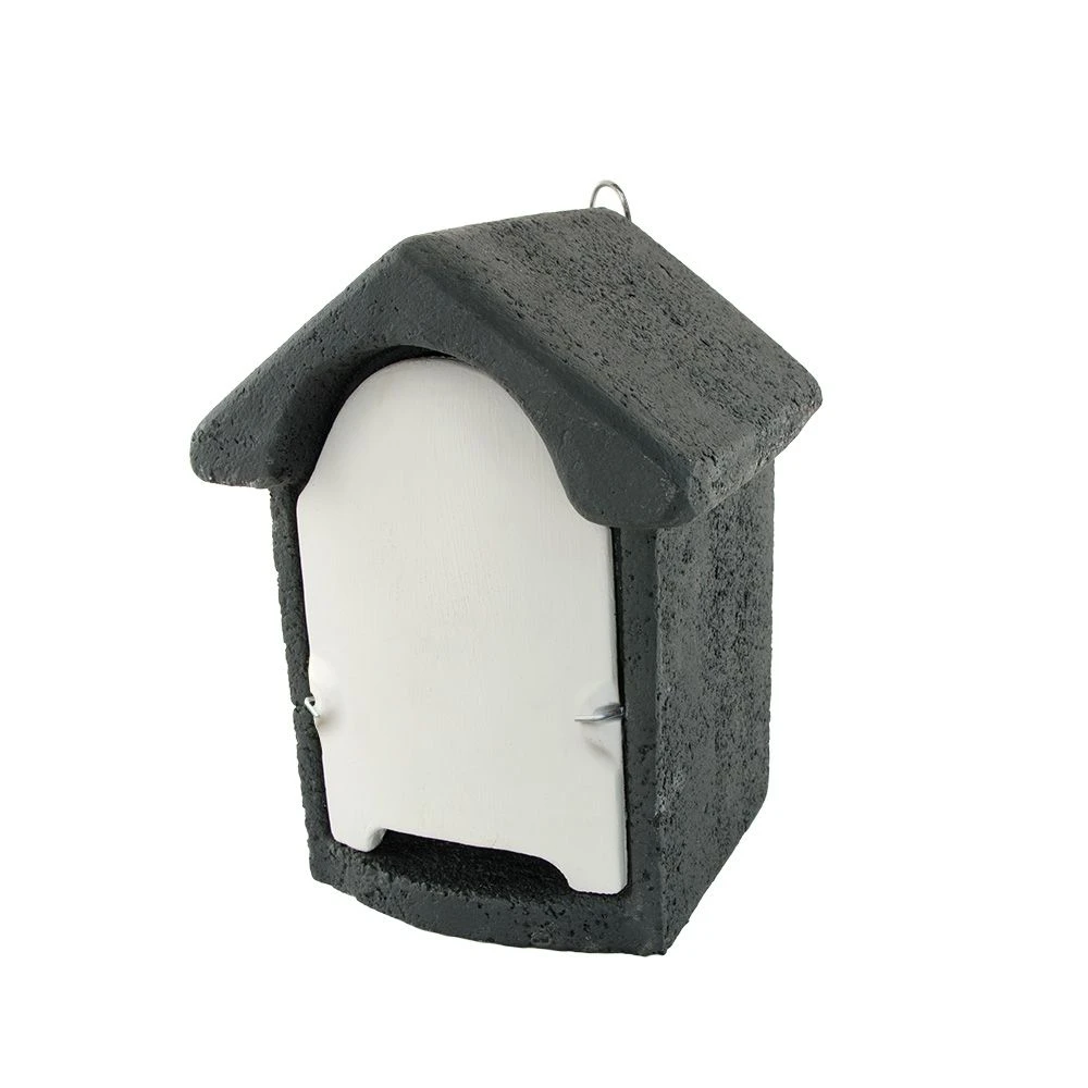 Aus Holzbeton gefertigt, bietet dieser Kasten einen idealen Unterschlupf für z.B. Zwergfledermäuse. Holzbeton besitzt von Natur aus eine grobe, raue Oberfläche, die den Fledermäusen einen festen Halt beim Hineinklettern bietet. Außerdem ist dieses Material sehr atmungsaktiv und sorgt somit für ein angemessenes Klima im Kasten.