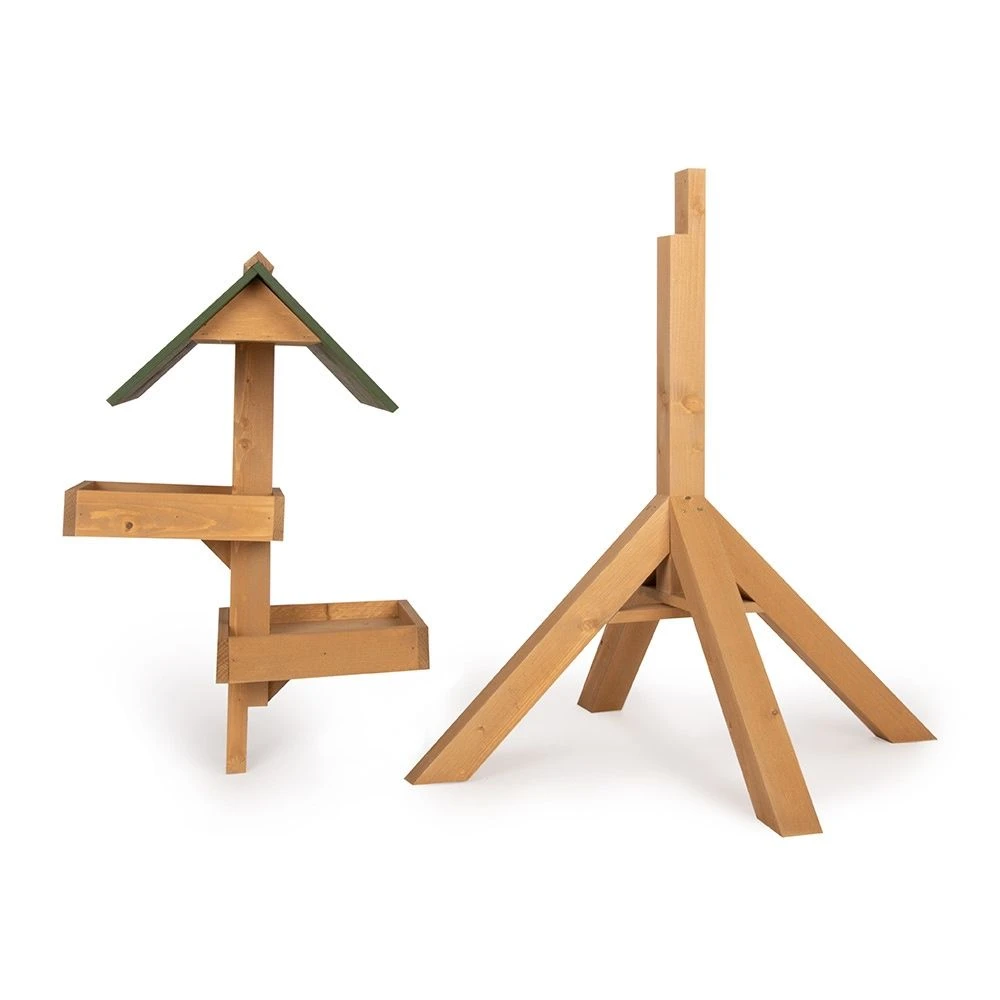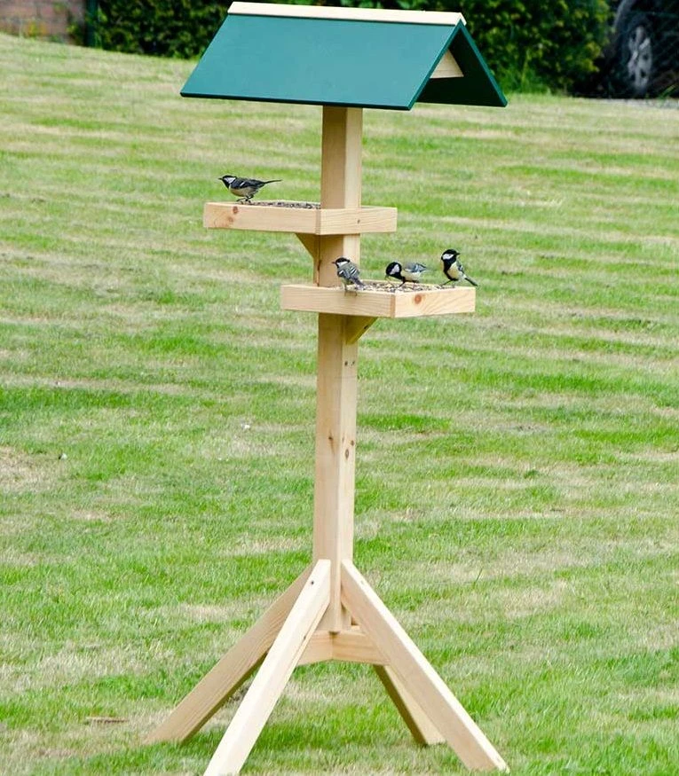 Das Vogelfutterhaus „Astoria“ zeichnet sich durch seine zwei separaten Futtertische aus, auf denen Sie unterschiedliche Futtersorten zugleich anbieten können. Natürlich bieten die zwei Tische auch vielen Vögeln gleichzeitig die Möglichkeit, an der Futterstelle fressen zu können. Das grüne, spitze Dach schützt das Futter bei Regenwetter und Schneefall. Dieses stehende Futterhaus ist in natürlichen, traditionellen Farben gehalten.