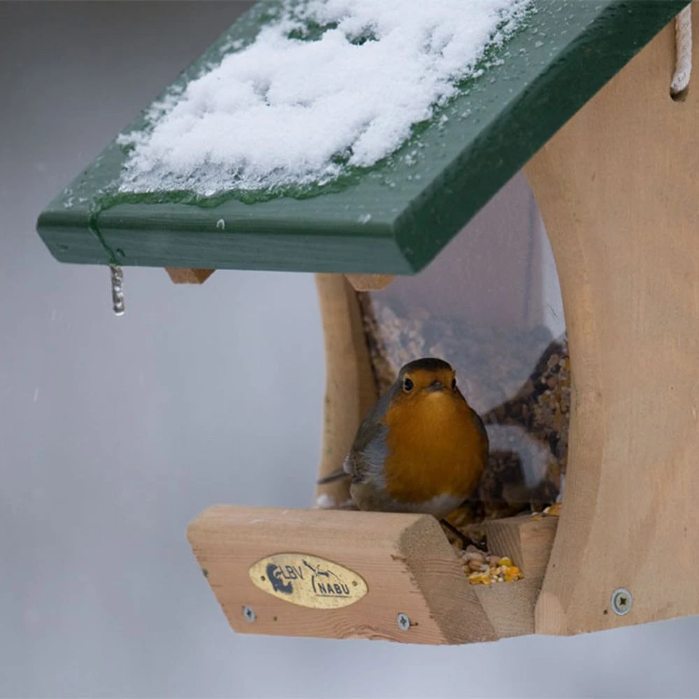 Dieses Futterhaus ist so konstruiert, dass man die Vögel unbemerkt aus unterschiedlichen Blickwinkeln beobachten kann. Das Dach ist abnehmbar, so dass sich das Futterhaus problemlos befüllen lässt. Zwischen dem Futtertisch und dem transparenten Zylinder aus Plexiglas bleibt ein Zwischenraum, der eine stets gleichbleibende Futterration garantiert. Das Futterhaus ist mit einer Schnur zum Aufhängen versehen.