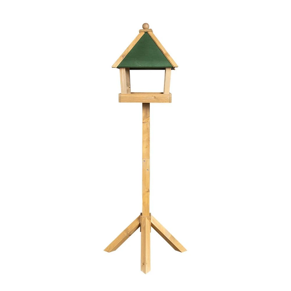 Mit dem Vogelfutterhaus „Glendale“ können Sie überall im Garten eine dekorative Futterstelle aufbauen. Der Futtertisch dieses edlen Modells bietet Platz für mehrere Futtersorten. Da es so großzügig geschnitten ist, können sich hier viele Vögel gleichzeitig aufhalten und an der Futterstelle fressen. Das grüne Dach schützt das Futter auch bei Regenwetter oder Schneefall. Das „Glendale“ ist in natürlichen, traditionellen Farben gehalten, sodass es sich in viele Gärten gut einfügt