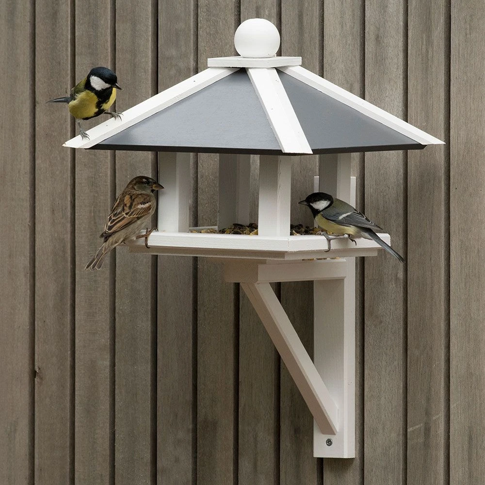 Sie können das Futterhaus „Greenwich“ an eine Mauer, einem Baum oder einem Lattenzaun aufhängen. Auch für Balkone geeignet.