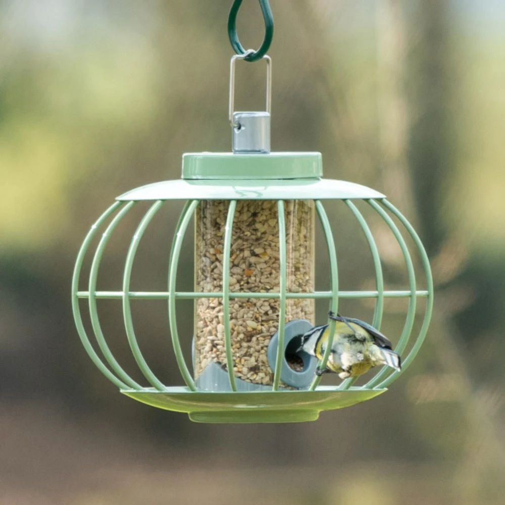 Die Futtersäule „Laterne“ ist ebenso attraktiv wie stabil. Mit ihrer hellgrünen Farbe passt sie perfekt in jeden Garten. Sie hat eine kompakte Größe und ist daher leicht zu handhaben. Dabei fasst sie doppelt so viel wie die meisten anderen Futtersäulen. Der Schutzkäfig sorgt dafür, dass nur kleine Vögel an das Futter gelangen können.