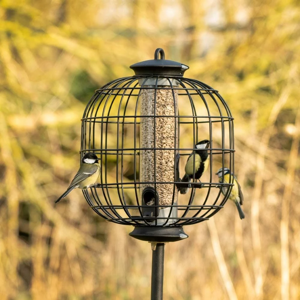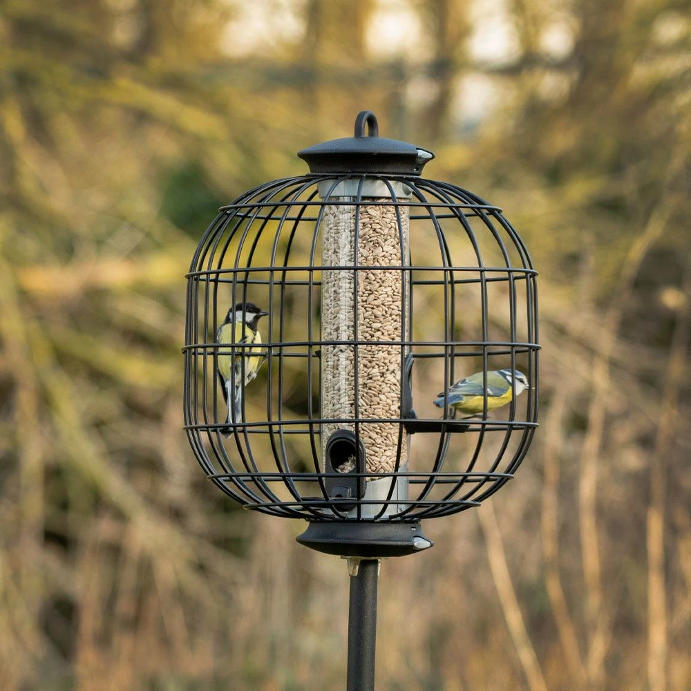 Mit diesem Schutzkäfig kann die Futtersäule für große sowie für kleine Vögel benutzt werden: einfach nach Bedarf den Schutz montieren oder weglassen. Möchten Sie kleine Vögel fördern, aber zeitgleich auch größere Vögel füttern, empfehlen wir zwei Futterstellen in sicherem Abstand zueinander einzurichten.