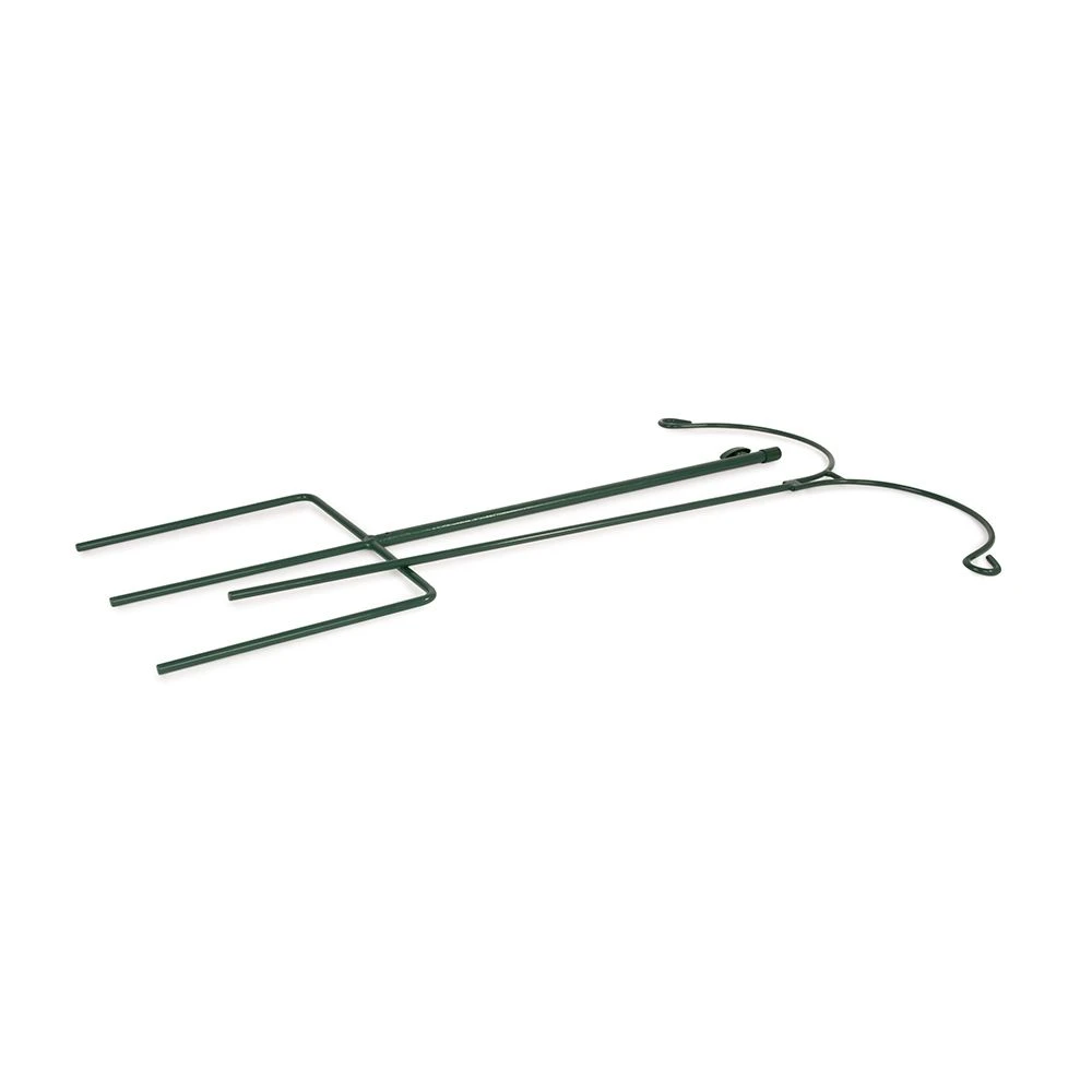 Dieser doppelte Hirtenstab aus Metall bietet Platz zum Aufhängen von Futtersäulen, Futterhäusern oder Wasserschalen. Der Dreispitz gewährleistet einen sicheren Stand im Boden. Der Hirtenstab ist ausziehbar, sodass sich die Länge zwischen 1,25 m und 1,50 m variieren lässt.