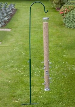 Dieser einzelne Hirtenstab ist speziell zur Verwendung mit unseren Riesenfuttersäulen entwickelt worden. Er ist besonders stabil und verstärkt, um das Gewicht der großen, gefüllten Futtersäulen tragen zu können. Der Hirtenstab ist ausziehbar, sodass sich die Länge zwischen 110 cm und 180 cm variieren lässt (den Dreispieß von 30 cm Länge nicht mitgerechnet).