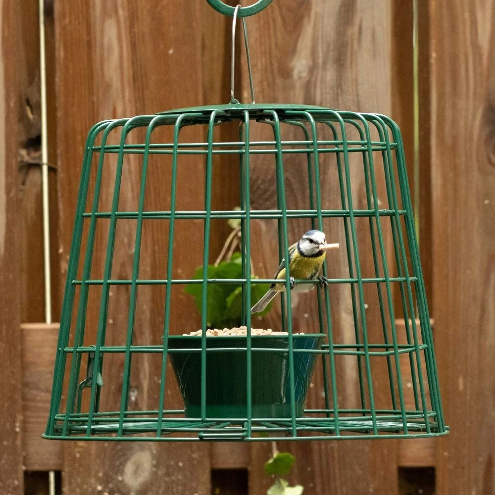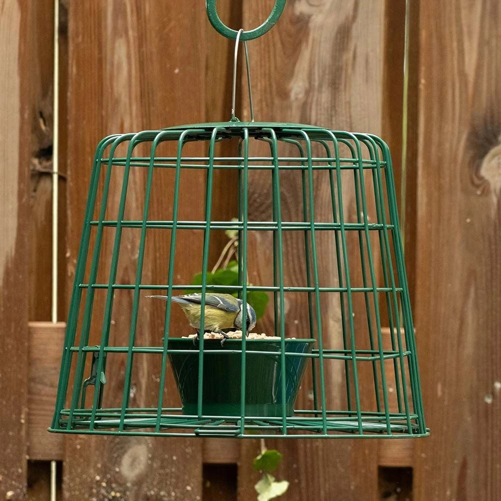 Mit diesem Spezial-Schutzkäfig können Sie Fett-Leckerbissen und Mehlwürmer* ausschließlich für die kleinsten Vögel reservieren. Die Durchflugöffnungen des Schutzkäfigs sind am Boden 3,1 x 5 cm weit, und oben 2,6 x 5 cm. Damit nur kleinere Vögel an das Futter gelangen und in aller Ruhe fressen können, ohne von größeren Artgenossen, Katzen oder Eichhörnchen aufgescheucht zu werden.