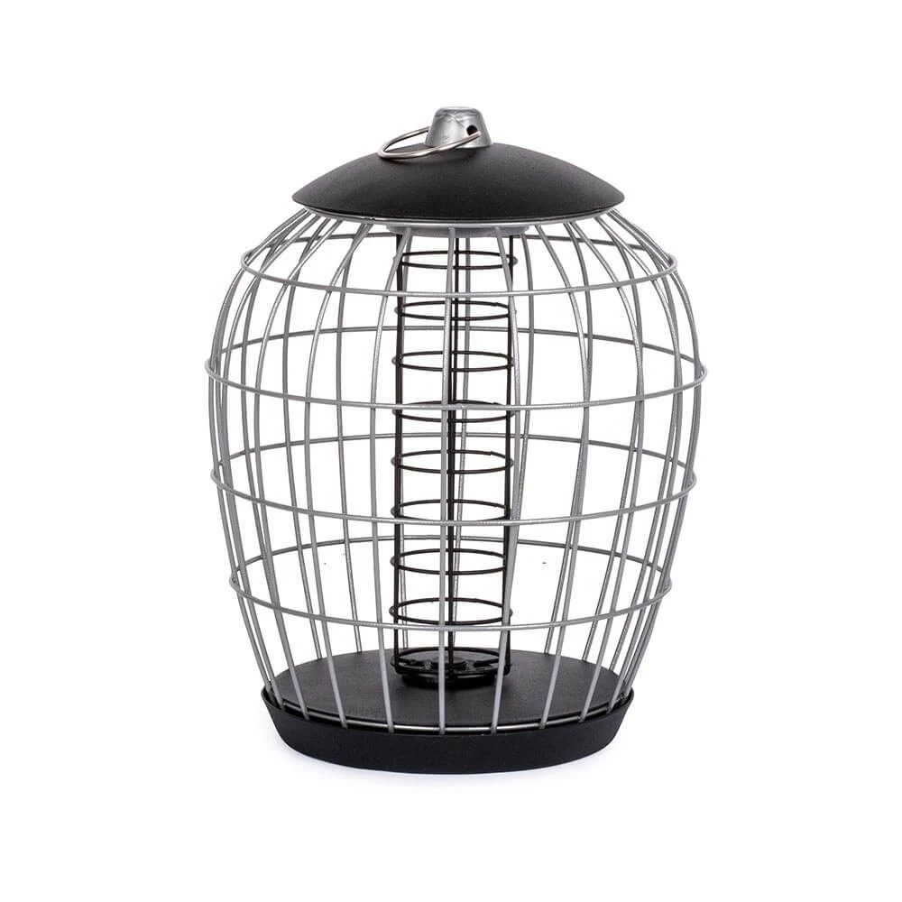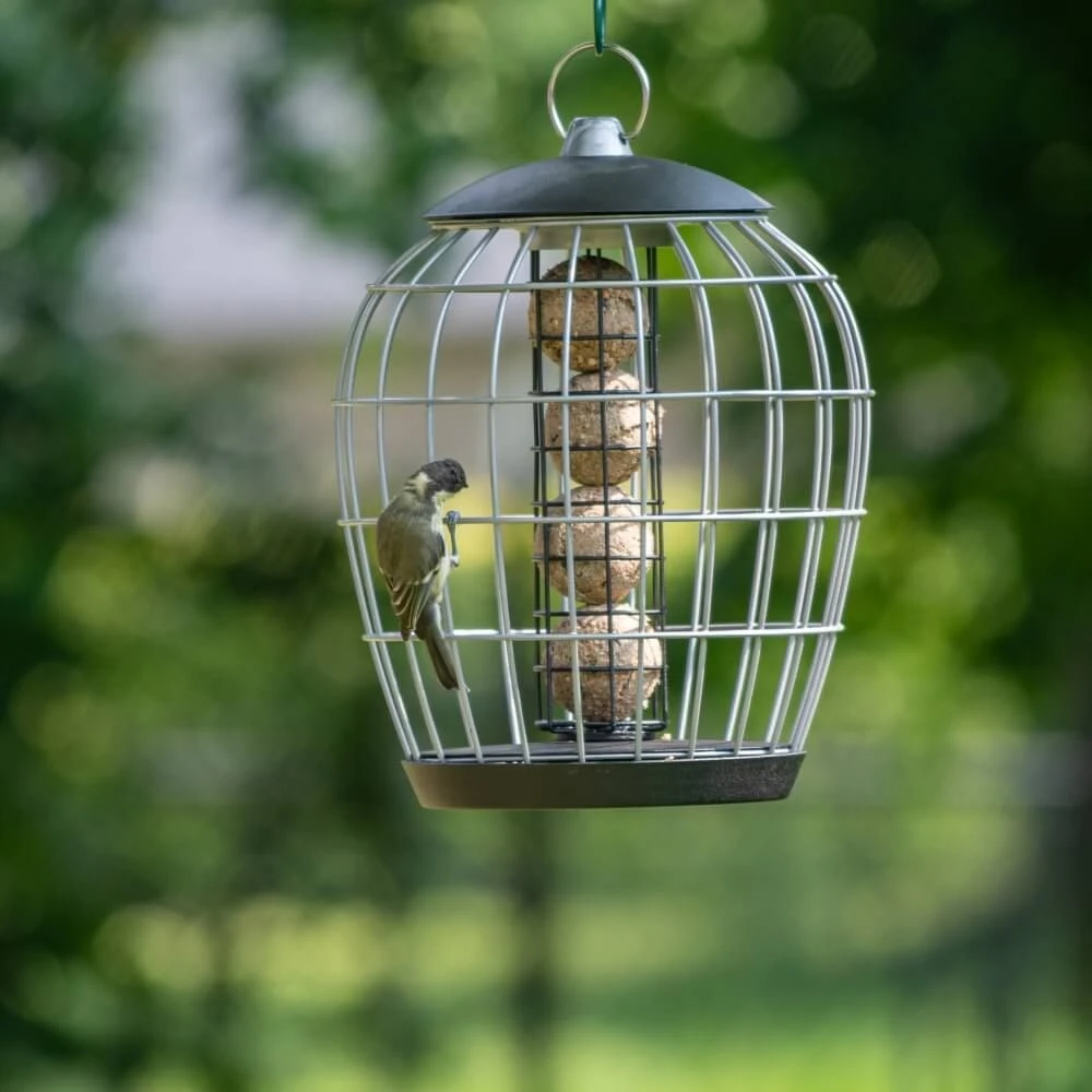 Das Metallsystem ist pulverbeschichtet. Dadurch haben Sie garantiert viele Jahre Freude an diesem Meisenknödelhalter mit Schutzkäfig. Hängen Sie dieses attraktive Futtersystem an einen Baum oder ein Futterpfahlsystem und erfreuen Sie sich an den Vögeln, die in Scharen kommen werden.