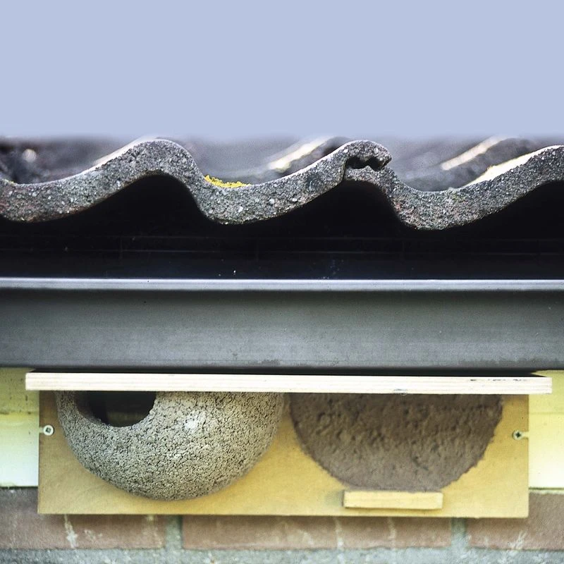 Diesen Kasten am besten unter Dachvorsprüngen von Gebäuden hängen. Mehlschwalben brüten gerne in Kolonien, so dass es durchaus sinnvoll ist, mehrere Nester nebeneinander anzubringen.