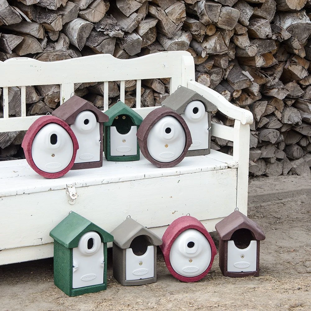 Dieser Nistkasten hat eine Einflugöffnung von 28 mm und eignet sich deshalb für kleine Meisen. Der Kasten ist mit einem Marderschutz ausgestattet und besteht aus WoodStone bzw. Holzbeton, einer speziellen Mischung aus Beton und Holzfasern, welche besonders isoliert und atmungsaktiv ist. In den Wintermonaten schützt das Material gegen Kälte, im Sommer verhindert es Überhitzung. Die konstante Temperatur im Kasten erhöht zudem die Überlebenschancen der Jungvögel erheblich.