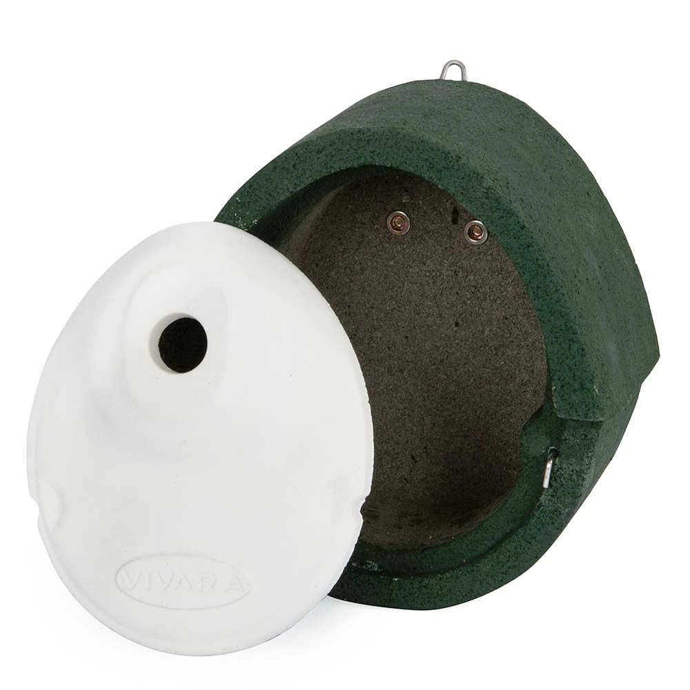 Dieser Nistkasten hat eine Einflugöffnung von 28 mm und eignet sich deshalb für kleine Meisen. Der Kasten ist mit einem Marderschutz ausgestattet und besteht aus WoodStone bzw. Holzbeton, einer speziellen Mischung aus Beton und Holzfasern, welche besonders isoliert und atmungsaktiv ist. In den Wintermonaten schützt das Material gegen Kälte, im Sommer verhindert es Überhitzung. Die konstante Temperatur im Kasten erhöht zudem die Überlebenschancen der Jungvögel erheblich.