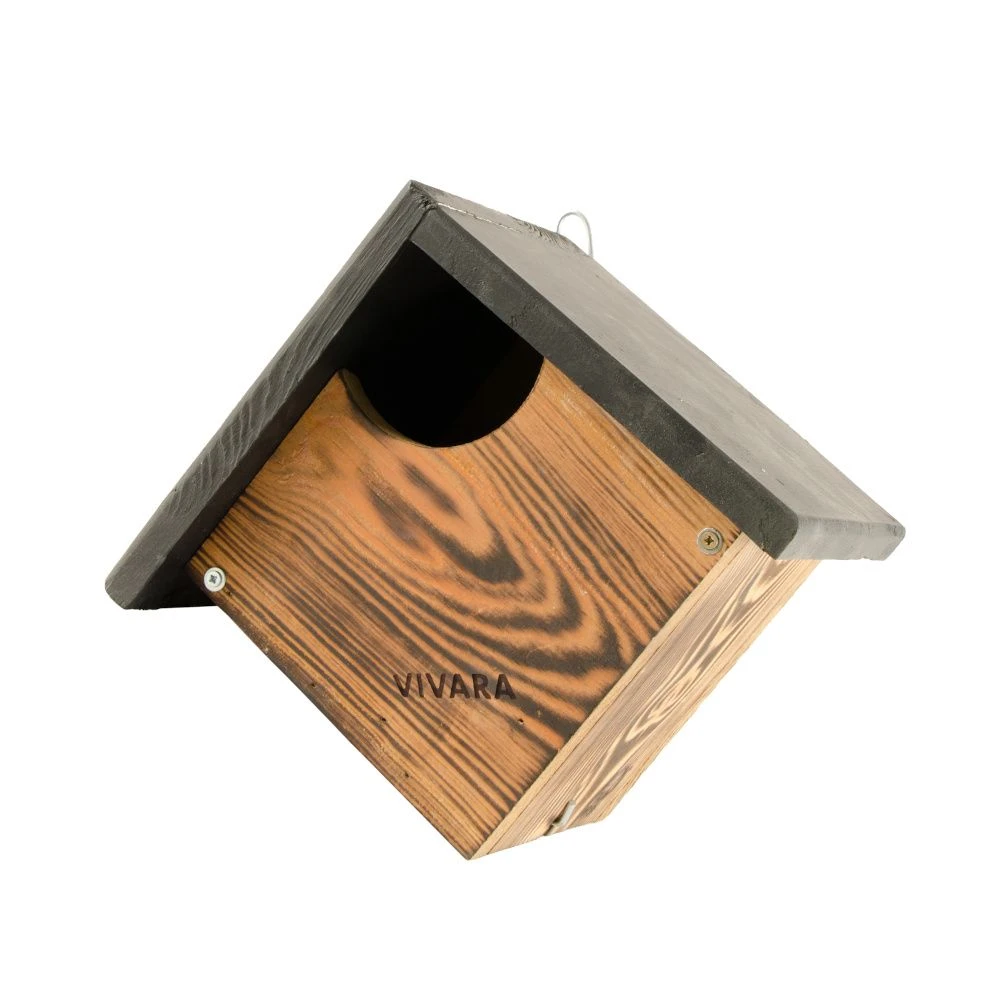 Der Nistkasten „Austin“ ist mit einer grossen und breiten Einflugöffnung versehen, welche ideal für Halbhöhlenbrüter, wie Amsel und Rotkehlchen, geeignet ist. Das schwarze Dach sowie das geflämmte Holz sorgen für einen rustikalen, natürlichen Look. Das geflämmte Holz verleiht ein ganz besonderes Flair und eine unverwechselbare Ausstrahlung. Es fügt sich sowohl in modernen als auch in naturnahen Gärten gut ein.