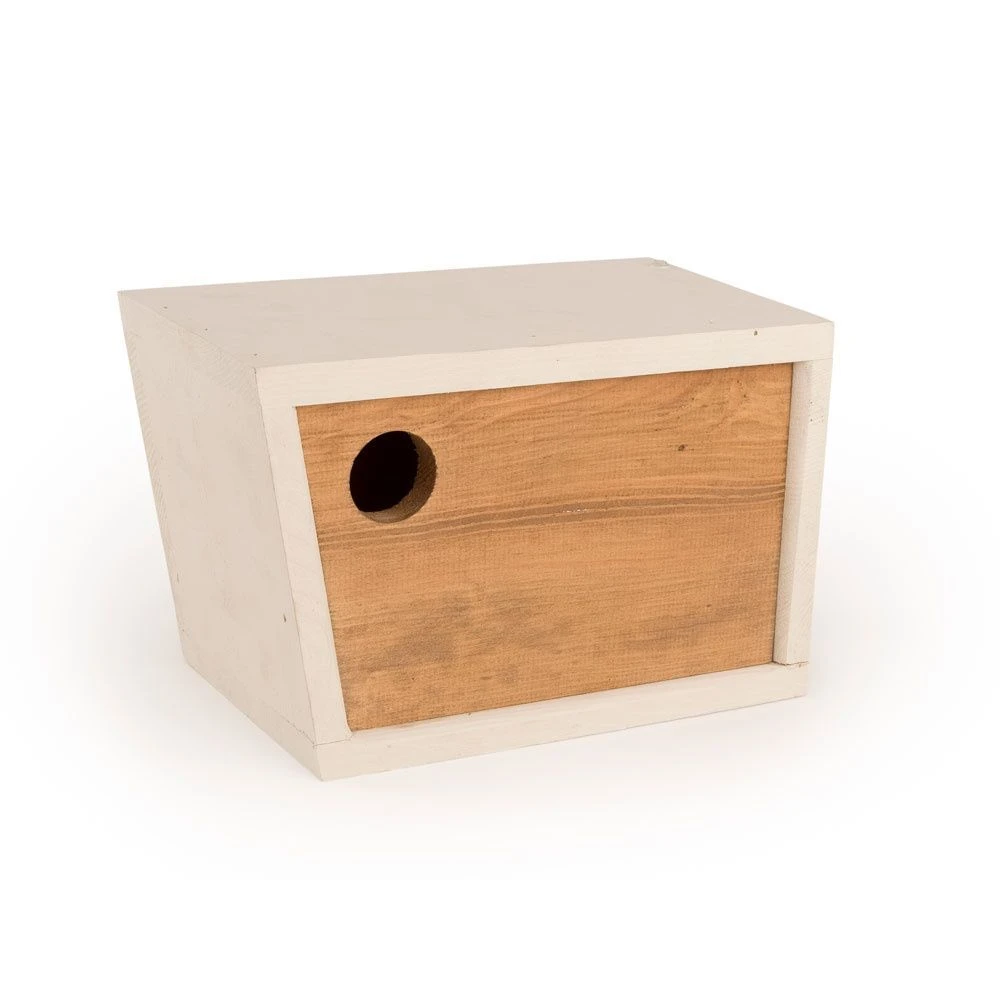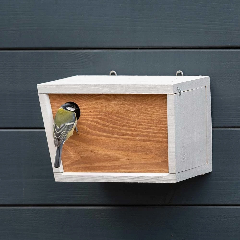 Dieser Nistkasten wurde speziell für einen häufigen Gartenvogel, den Haussperling, entworfen. Er kann auch von Meisen, Kleibern und Trauerschnäppern genutzt werden. Mit seinem modernen Design und seiner Farbgestaltung ist dieser Nistkasten eine Bereicherung für jeden Garten.