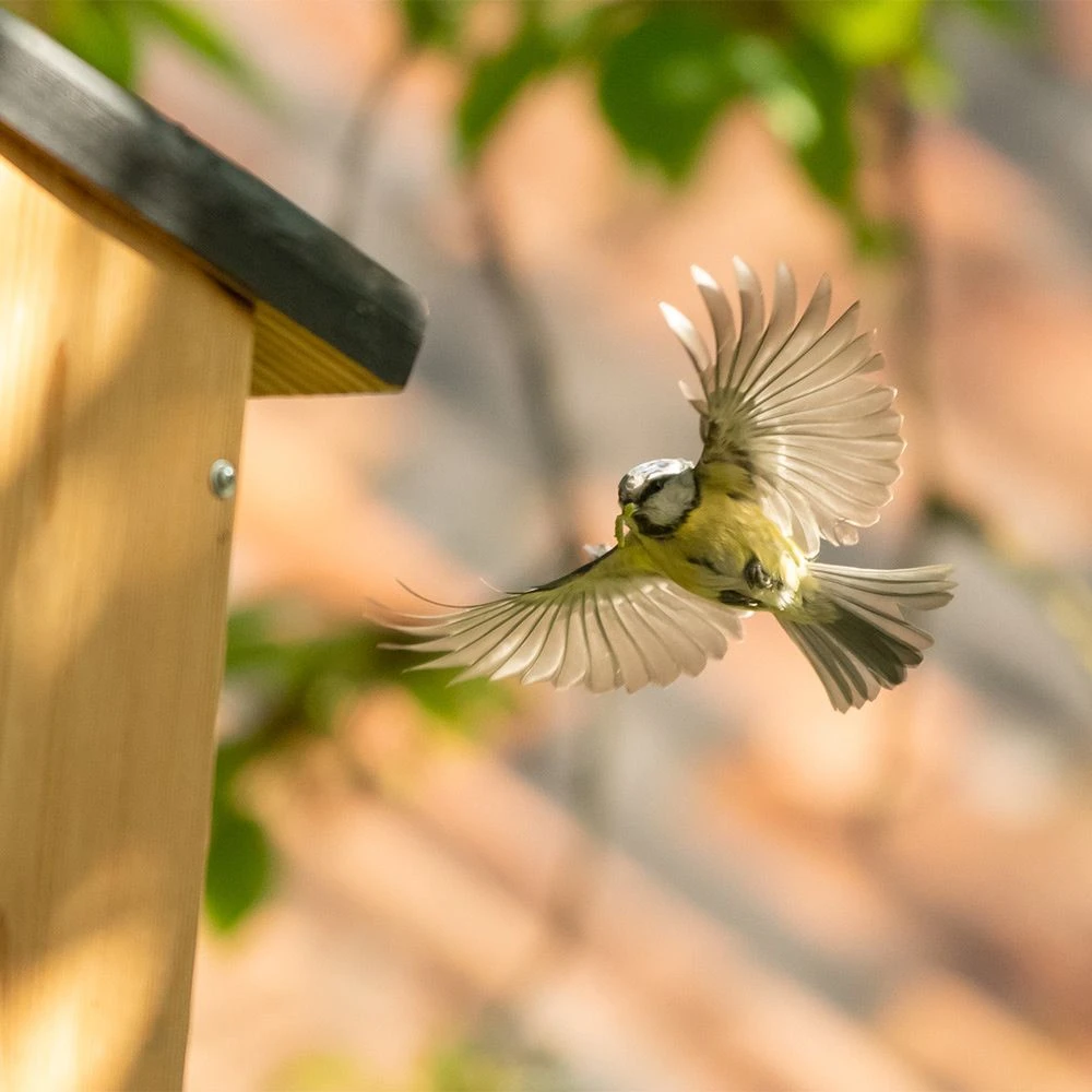 Dieser Nistkasten hat eine Einflugöffnung von 32 mm und ist nicht nur für Meisen, sondern auch für Sperlinge, Fliegenschnäpper und Kleiber geeignet.