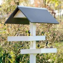 Die Futtersäule besitzt 6 Öffnungen und ist auch gewichtsverstellbar, um unerwünschte größere und schwerere Vögel sowie Eichhörnchen zu kontrollieren. Alle Komponenten sind spülmaschinenfest.