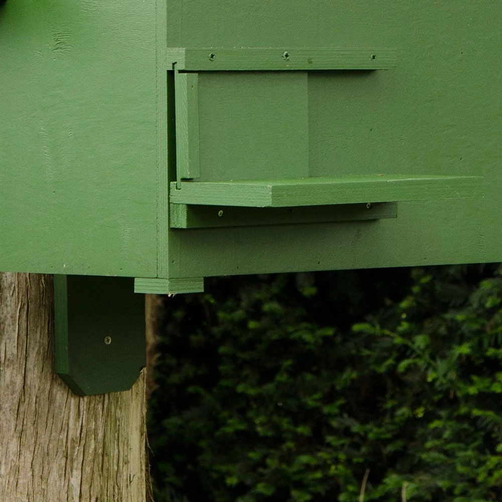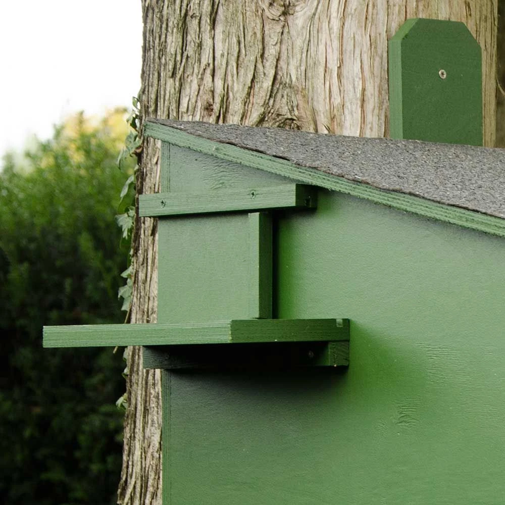 Um Baummardern einen Rückzugsort zu bieten, hängen Sie den Kasten in minimal 2,5 m Höhe an einen Baum oder eine Häuserwand. Der Steinmarder bevorzugt Behausungen in Bodennähe, vorzugsweise etwas geschützt unter Sträuchern. Wahlweise können Sie einen oder zwei Eingänge öffnen. Wird der Kasten aufgehängt, öffnen Sie am besten den höheren Seiteneingang, und bei Benutzung auf dem Boden den Eingang an der Frontseite.