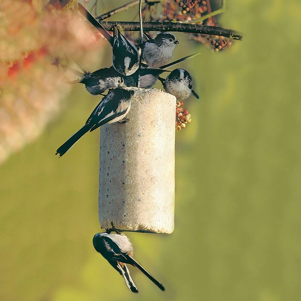 Die Energiekuchen sind beliebt bei Meisen, Finken, Spechten, Kleibern, Gartenbaumläufern, Wintergoldhähnchen und Rotkehlchen. Hängen Sie sie in einem Energiekuchen-Halter an ein Pfahlsystem oder einen Ast. Oder bieten Sie sie in einem Energiekuchenhaus an, das Sie an eine Mauer oder an einen Baumstamm hängen.