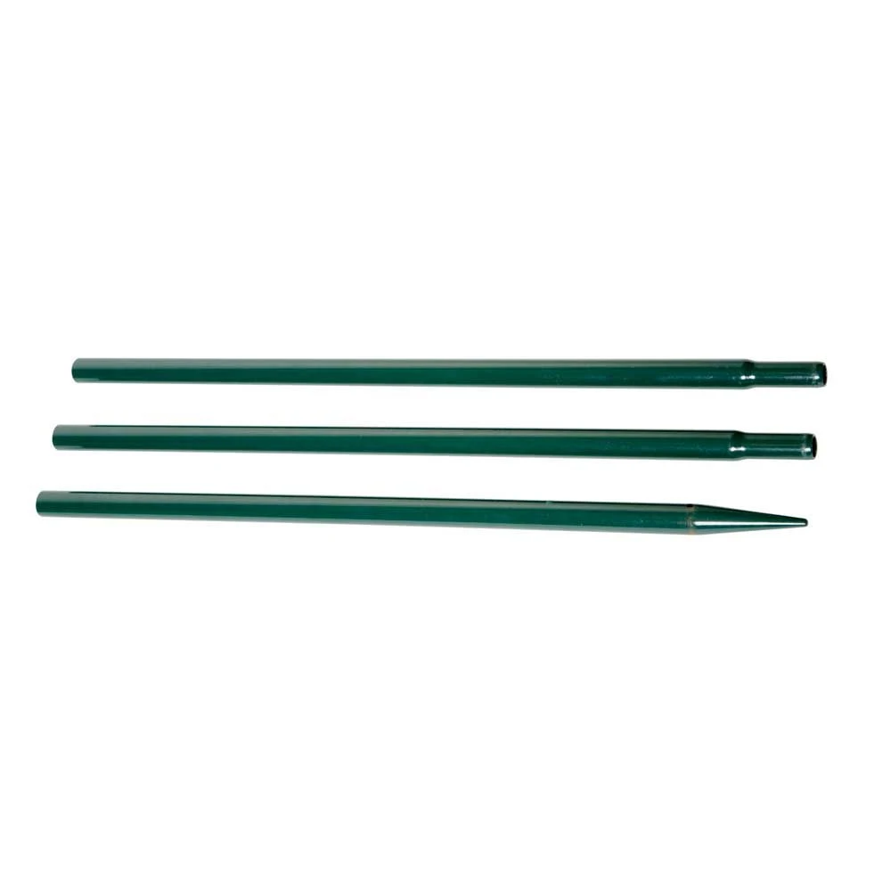 Der Vivara Kombi-Pfahl mit einer Länge von 170 cm ist für das Aufschrauben von Futtersäulen konzipiert – jedoch können Sie mit Zubehör auch Aufhängemöglichkleiten für Futtersysteme schaffen. Er besteht aus drei Einzelteilen, die sich einfach zusammenstecken lassen. Am unteren Ende befindet sich eine Spitze, die sich etwa 60 cm tief in die Erde bohren lässt. Auf diese Weise bekommt der aus beschichtetem Aluminium bestehende Pfahl einen sicheren Halt.