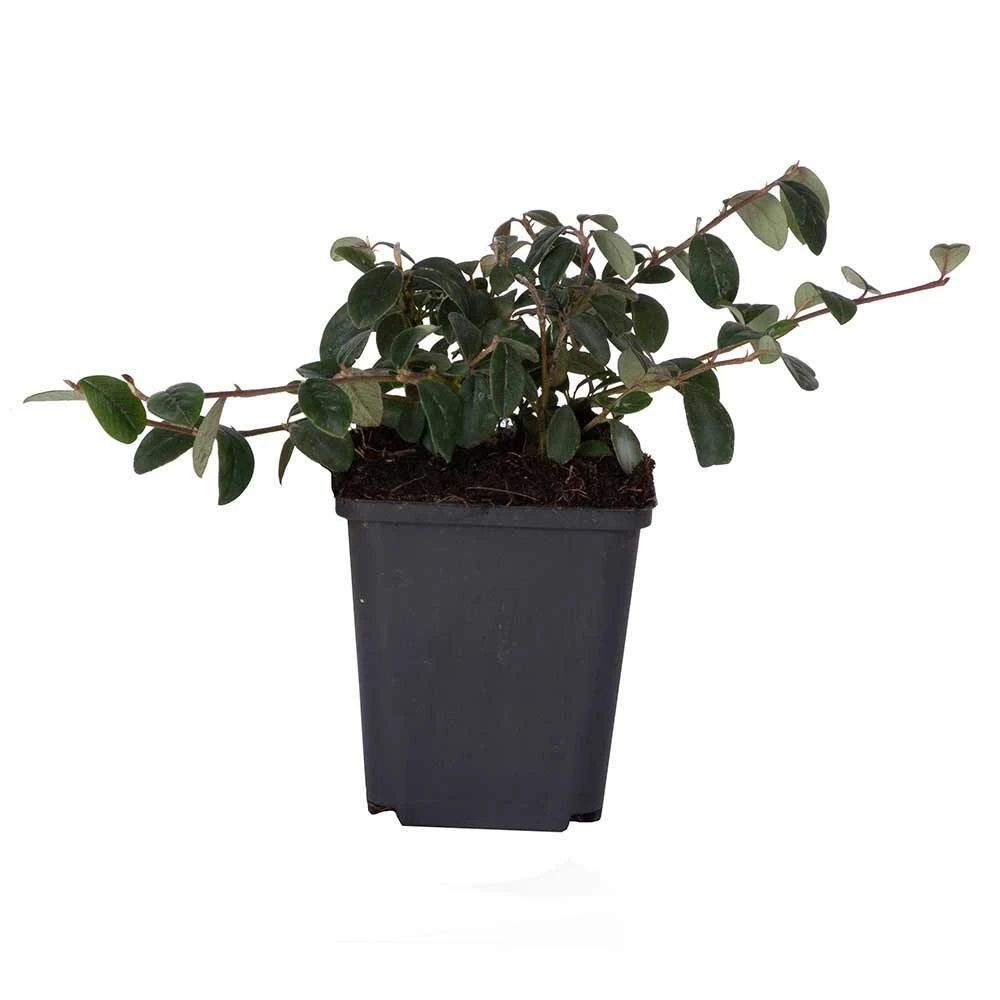 Dieser immergrüne, niedrige Strauch (höchstens 30 cm hoch) hat kleine Blätter. Die Zwergmispel ist ein idealer Bodendecker. Die Zwergmispel blüht von Mai bis Juli mit kleinen, weißen Blüten, die eine große Anziehungskraft ausüben auf Hummeln, Bienen und Schwebfliegen. Nach der Blüte bilden sich rote Beeren, die Singdrosseln und in manchen Jahren auch durchziehende Seidenschwänze anlocken.